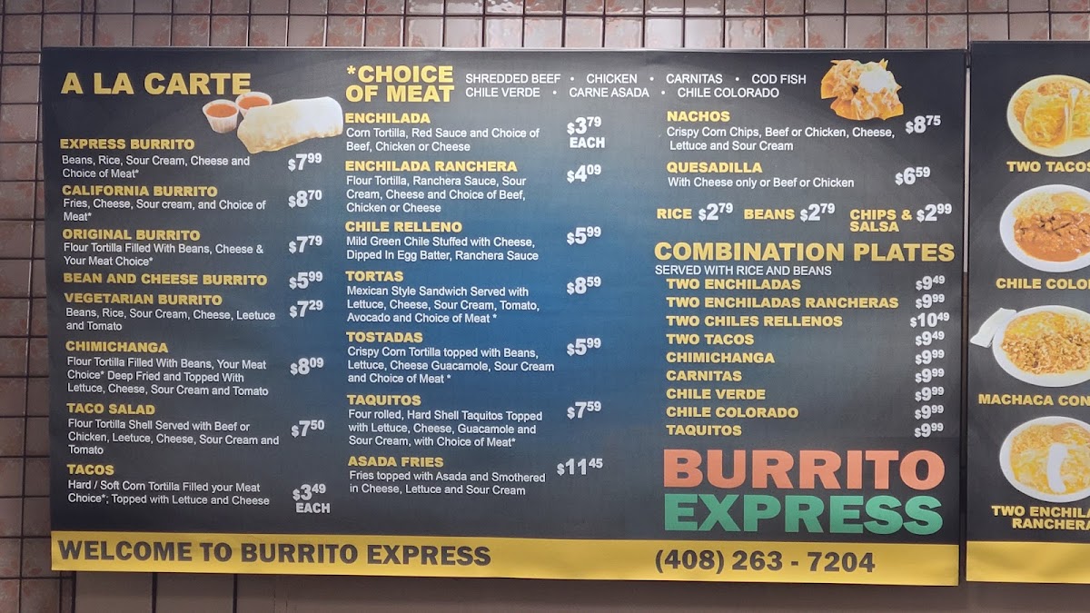 Welcome to Burrito Express - Milpitas, where authentic Mexican flavors come alive! Located at 275 Jacklin Rd, Milpitas, CA, this gem specializes in hearty portions served with a warm, friendly atmosphere. Dive into a menu that features everything from the mouthwatering Chile Relleno to the classic Vegetarian Burrito, lovingly stuffed with beans, rice, cheese, and more for only $8.79. Don't miss the flavorful Nachos topped with your choice of meat for just $10.99!